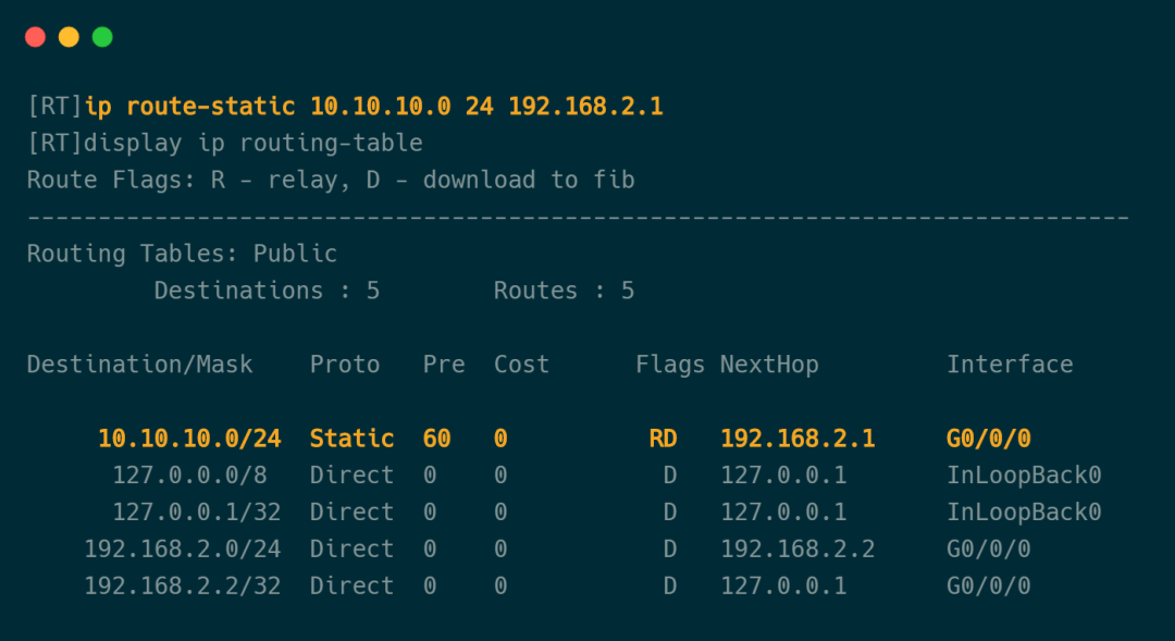 4、直连路由:路由器接口所连子网,只有当接口处于工作状态时,路由表才会出现相应的直连路由。