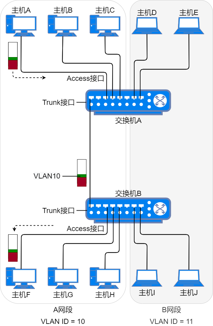 4、无标记帧( Untagged ):不携带 VLAN 标签的数据帧,通常终端发出的就是无标记帧。
