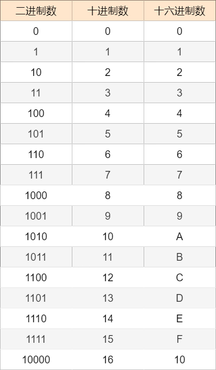 10、十六进制:逢 16 进位、用 0 ~ F 表示数字的计数系统。