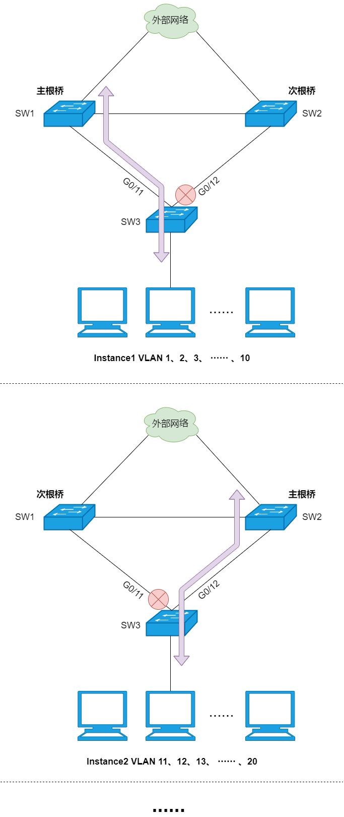 15、MSTP :即多生成树协议,按照指定的实例运行 STP 计算。