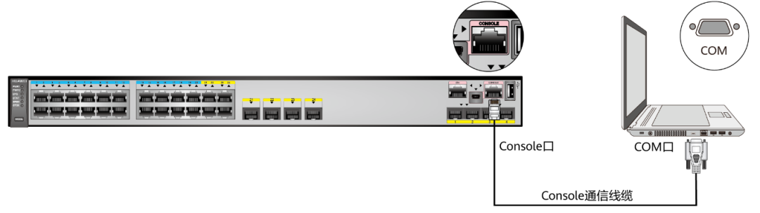 7、Console 接口:即控制台接口,通过 Console 线缆连接自己的终端和数通设备的 Console 接口,使用终端模拟软件对数通设备进行本地管理访问。