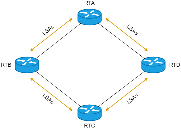 3、链路状态通告( LSA ):链路状态型路由协议用来通告路由信息的方式。