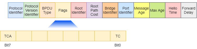 7、拓扑变化通知 BPUD :由检查到拓扑变化的非根交换机产生,通过自己的根端口向根网桥方向发送。收到 TCN BPDU 的非根交换机,会通过自己的根端口向根网桥方向转发,同时向收到 TCN BPDU 的指定端口返回确认消息。根网桥收到 TCN BPDU 后,会在下一个 BPDU 中更新拓扑的变化。