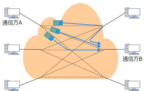 2、包交换:又叫做分组交换,是将数据分为多个消息块(即数据包),再通过网络对每个数据块进行单独传输选路。