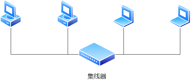 2、集线器:有多个端口,可以把大量设备连接到一个共享型以太网,只能从一个接口接收的数据通过(除这个接口外的)所有接口发送出去的物理层设备。