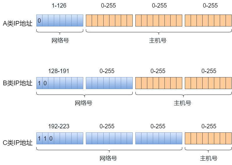 4、有类编址:将 IP 地址通过前 4 位二进制数分为 A 、B 、C 、D 等类别,并按照类别固定网络位长度的编址方式。
