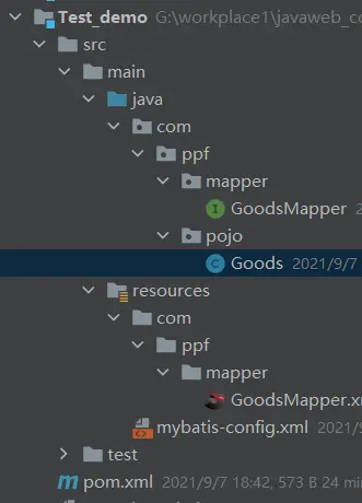 5.在resourses资源包下创建一个和接口同级目录的包用来存放接口映射文件GoodsMapper.xml