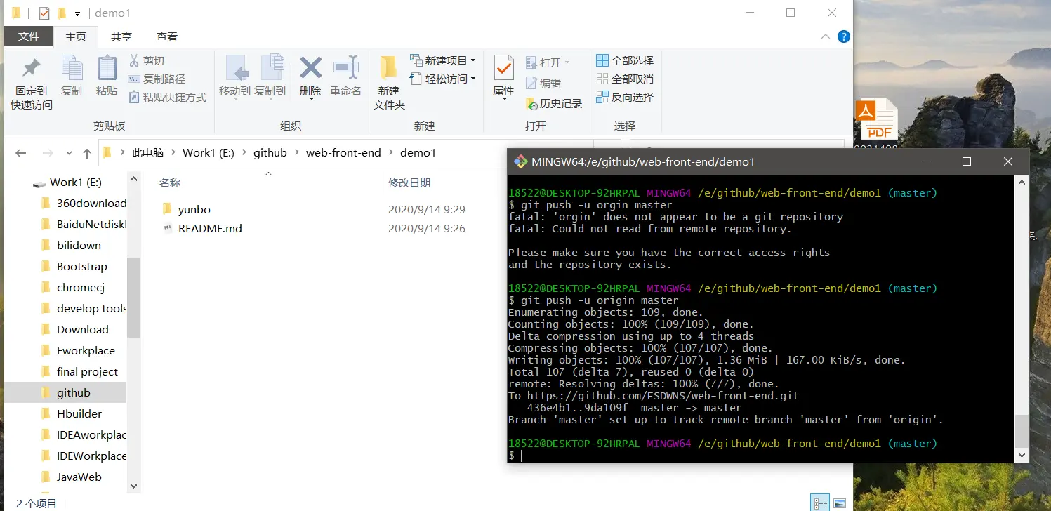 以上就是将本地文件夹推送到远程仓库的基本步骤。有时或许要初始化,但是我省略了这一步,也没有出现问题,git还需要更多的学习。