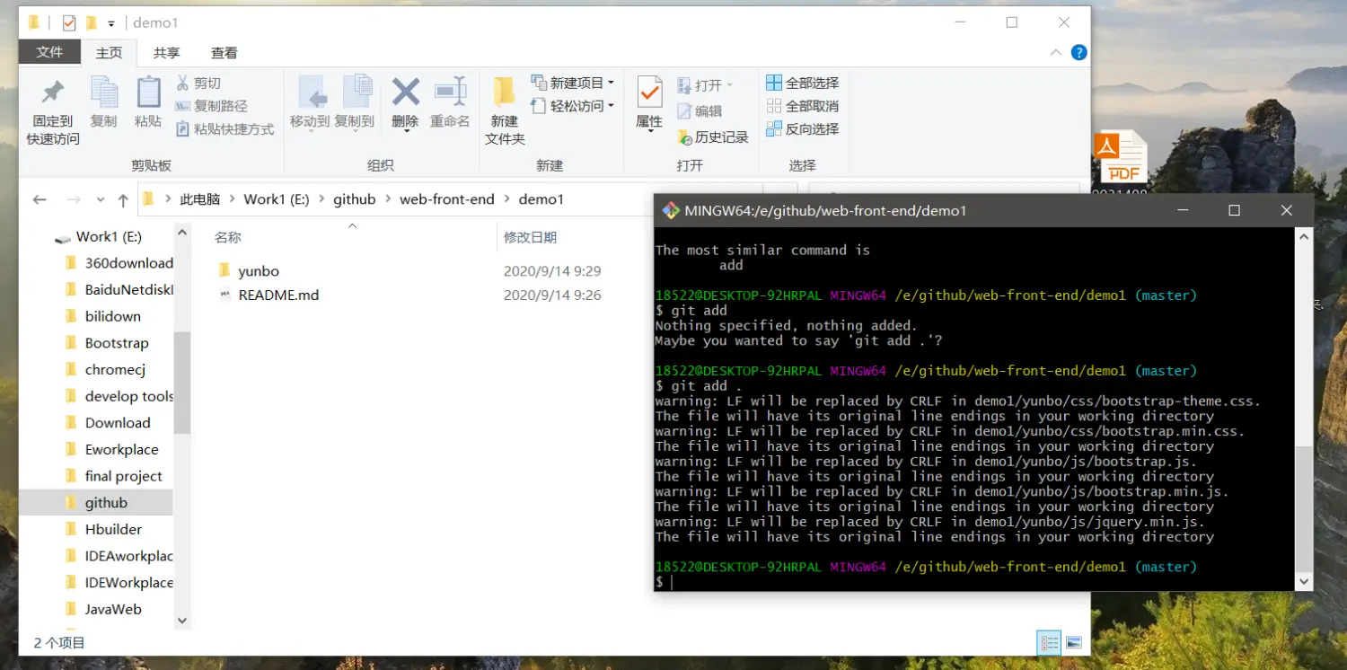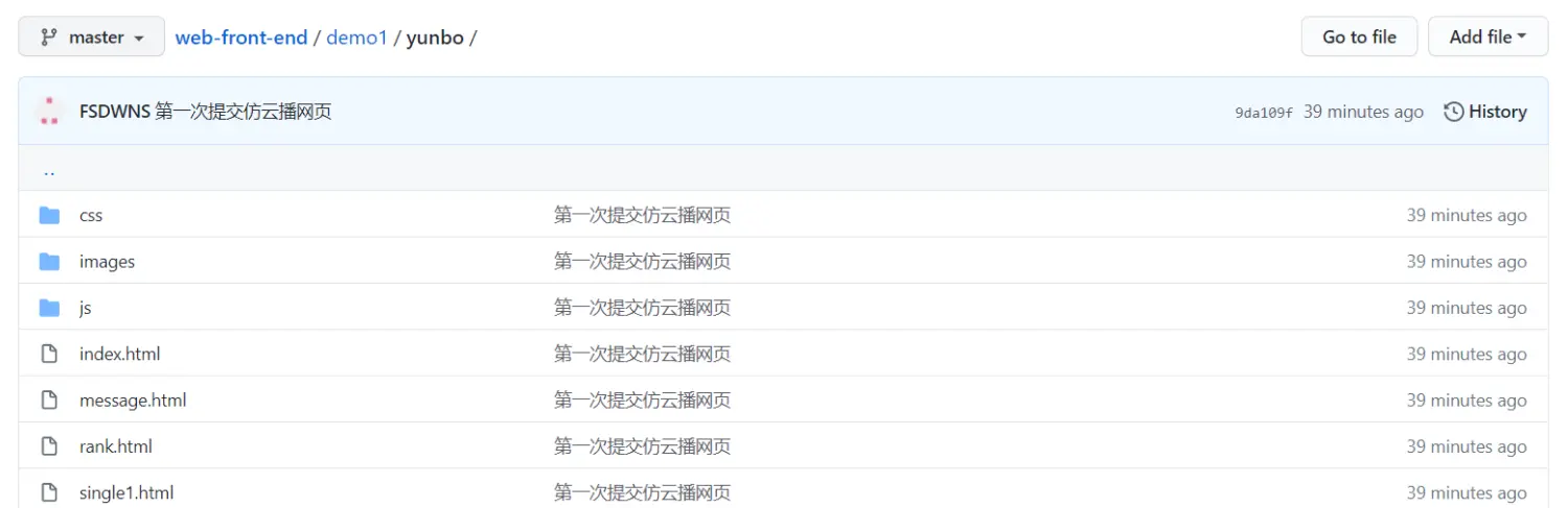 注意,这里的add后面空格再一个小点,add.不识别命令,我仿的是一个云播网页,直接拷贝到demo1下面。