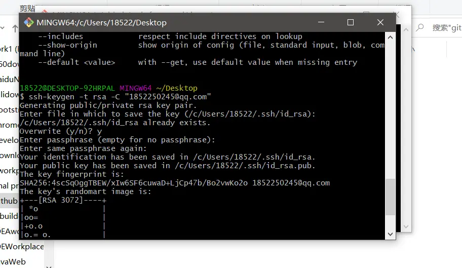 有的时候每次提交都需要输入用户名和邮箱,所以我建议配置ssh密钥,这样就省得每次登陆验证。