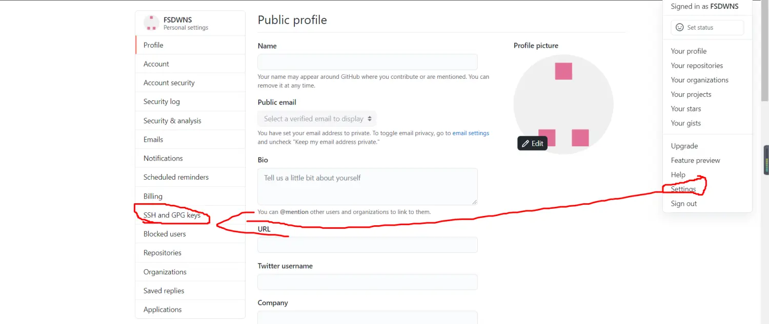 然后再你的用户名文件夹下有个.ssh文件夹打开,将id_rsa.pub复制到github下面的SSH keys下面。