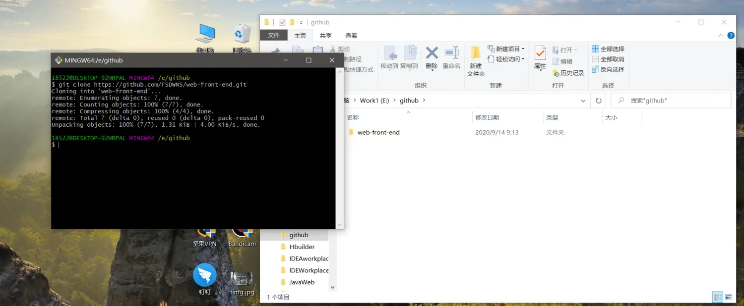 clone后你会发现生成一个文件夹,里面有README.md和.git文件。