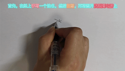 在纸上手写一个姓名,然后拍照,再将图片发送到电脑上;