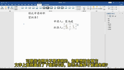 可是签名照片不是透明的,如果想放在其它文字上面就盖住了下面的内容,那怎么操作才能避免呢?