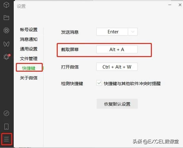 更改快捷键:找到微信系统设置按钮,在快捷键处可设置任意适合自己的快捷键。